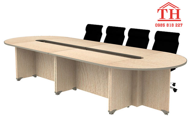 Bàn họp văn phòng hình oval tạo sự mềm mại và thoải mái. Mẫu bàn họp này có thiết kế đơn giảm mà tinh tế. Đặc biệt khi sử dụng chất liệu gỗ ép công nghiệp vừa đẹp mắt lại vừa tiết kiệm được rất nhiều chi phí. Hãy lựa chọn loại bàn họp này với những căn phòng có màu sáng để làm hài hòa giữa hai màu sắc với nhau, giảm bớt căng thẳng trong quá trình họp.