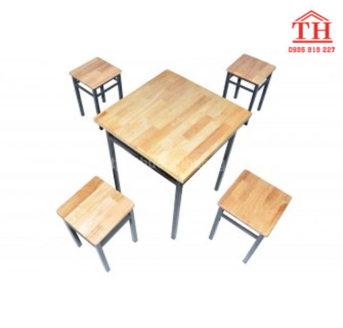 Bộ bàn ghế quán ăn nhanh pallet đôn vuông. Chất liệu sử dụng là loại gỗ thông có độ bền tốt, trong lượng nhẹ dễ dàng di chuyển khi sử dụng. Bàn 4 ghế có kích thước ghế 30x30x46 (cm), bàn 60x60x74 (cm). Giá bộ bàn ghế: 1,000,000đ.