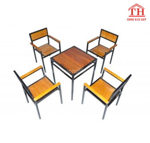 Bộ bàn ghế quán ăn nhanh pallet có tay. So với những mẫu bàn ghế cho quán nhanh ăn trên thì mẫu bàn pallet có tay có thiết kế sang trọng hơn. Màu sắc vàng đậm phù hợp cho nhiều không gian quán ăn. Kích thước ghế 46x46x45/85 (cm), bàn 60x60x73(cm). Giá bộ bàn ghế 1,700,000 đ.