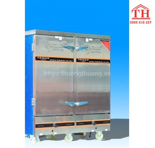 Bếp nấu cơm công nghiệp 12 khay sử dụng cả gas và điện. Thân và cánh tủ bao gồm 3 lớp trong đó có 2 lớp inox và 1 lớp cách nhiệt. Kích thước bếp 710 x 660 x 1.600mm (R x N x C). Giá bếp nấu cơm công nghiệp 12 khay là 13,000,000đ.
